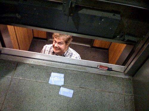 Atenção: Jamais tente sair por quaisquer aberturas, se o elevador não estiver estabilizado, e nivelado junto ao solo! Não há perigo iminente, se você permanecer no elevador, até a chegada do resgate.